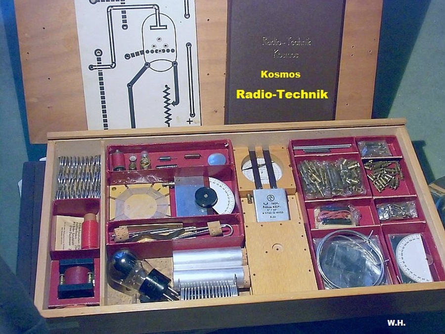 Neben dem Radiomann-Kasten gab es auch eine etwas umfangreichere Version, die sich auch schon mehr an ein anderen Nutzerkreis richtete: Der Kosmos Radio-Technik Kasten.