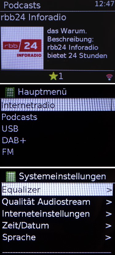 Kombi-Radio für Internet-Radio, DAB+, UKW FM, Podcast, USB, Sound Player von USB. Bluetooth in. |